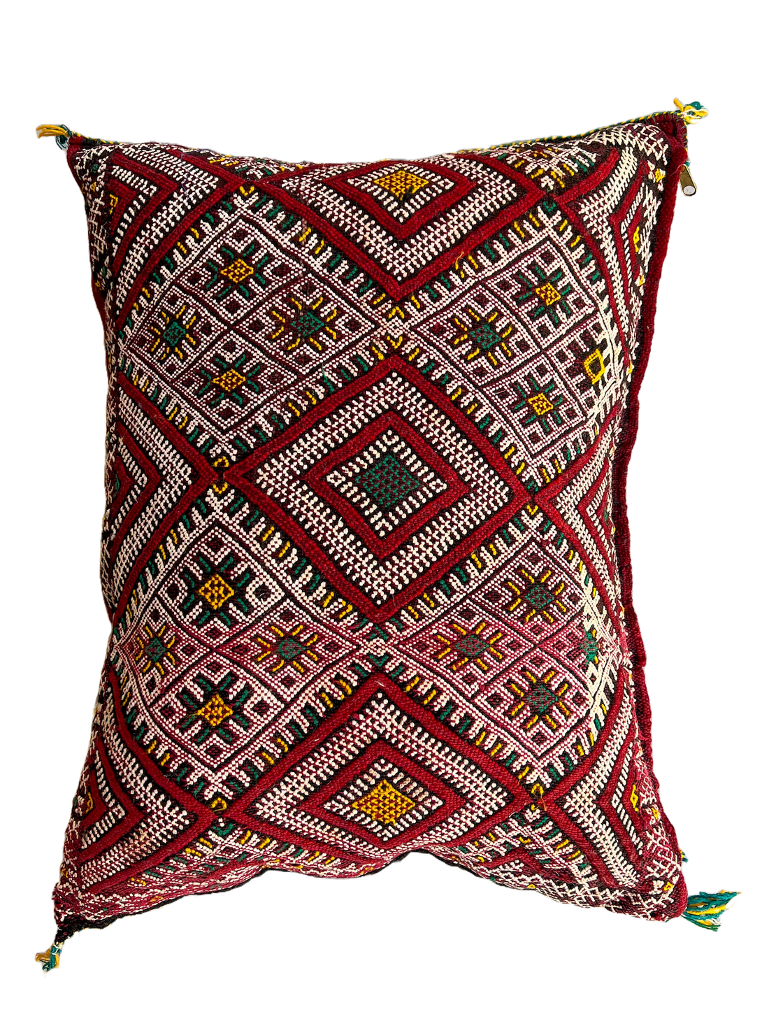 Ain Leuh Vintage Pillow - Deep Red and Indigo Handira