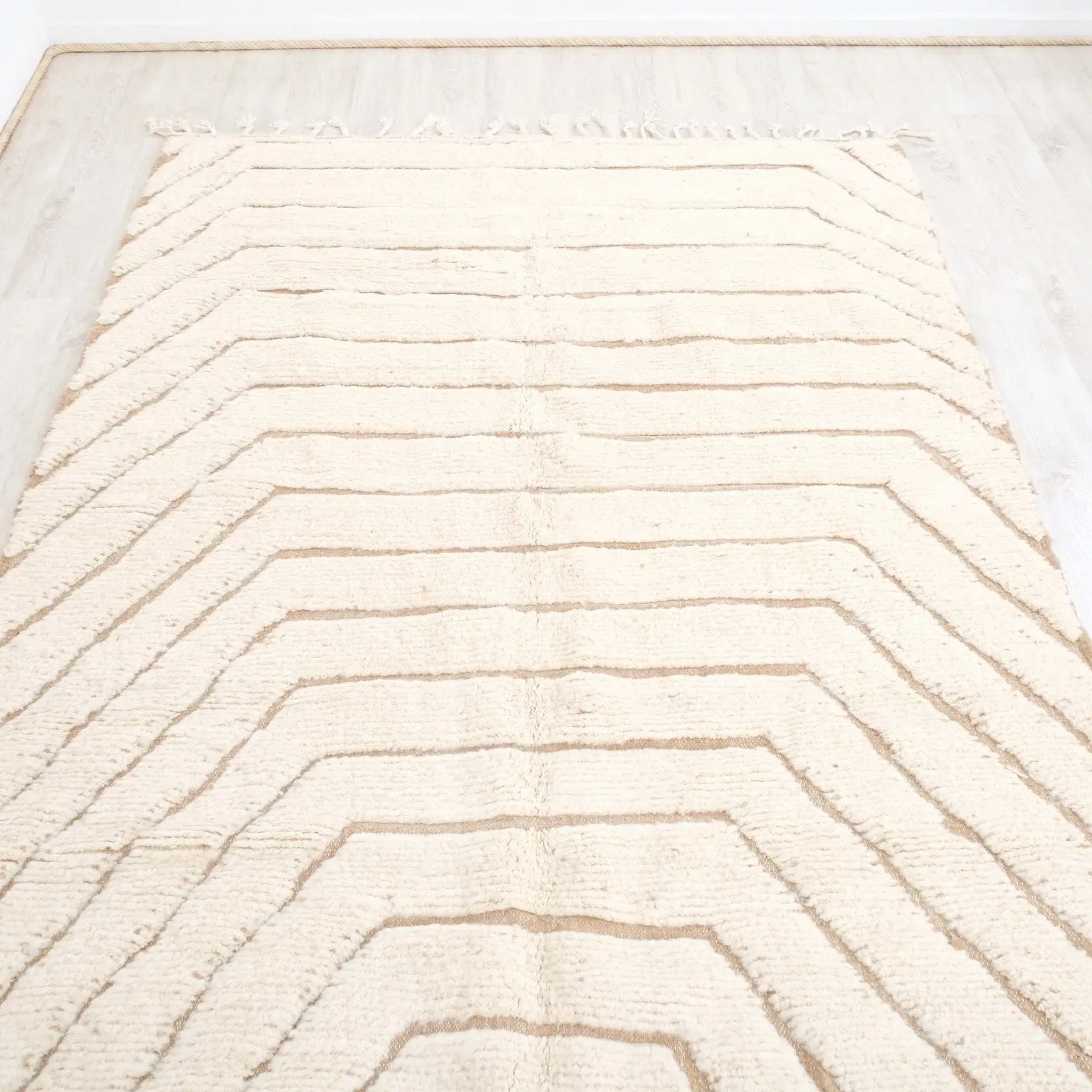 Custom-made Beni Ourain rugs offer a unique blend of elegance and personalization, tailored to meet your specific design preferences. Each rug is crafted with precision, allowing you to choose the measurements and design elements that reflect your individual style.You have the freedom to select dimensions and patterns, ensuring that the rug fits seamlessly into your space.